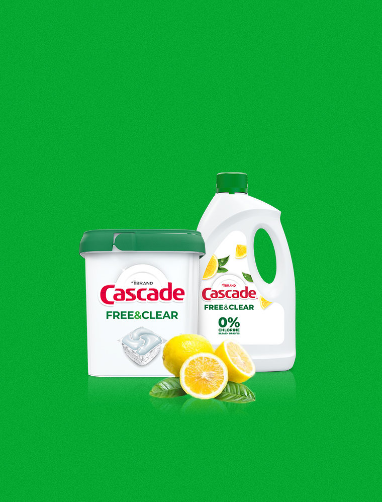Get a powerful clean that's free of heavy perfumes, chlorine bleach, and phosphates with Cascade Free & Clear.